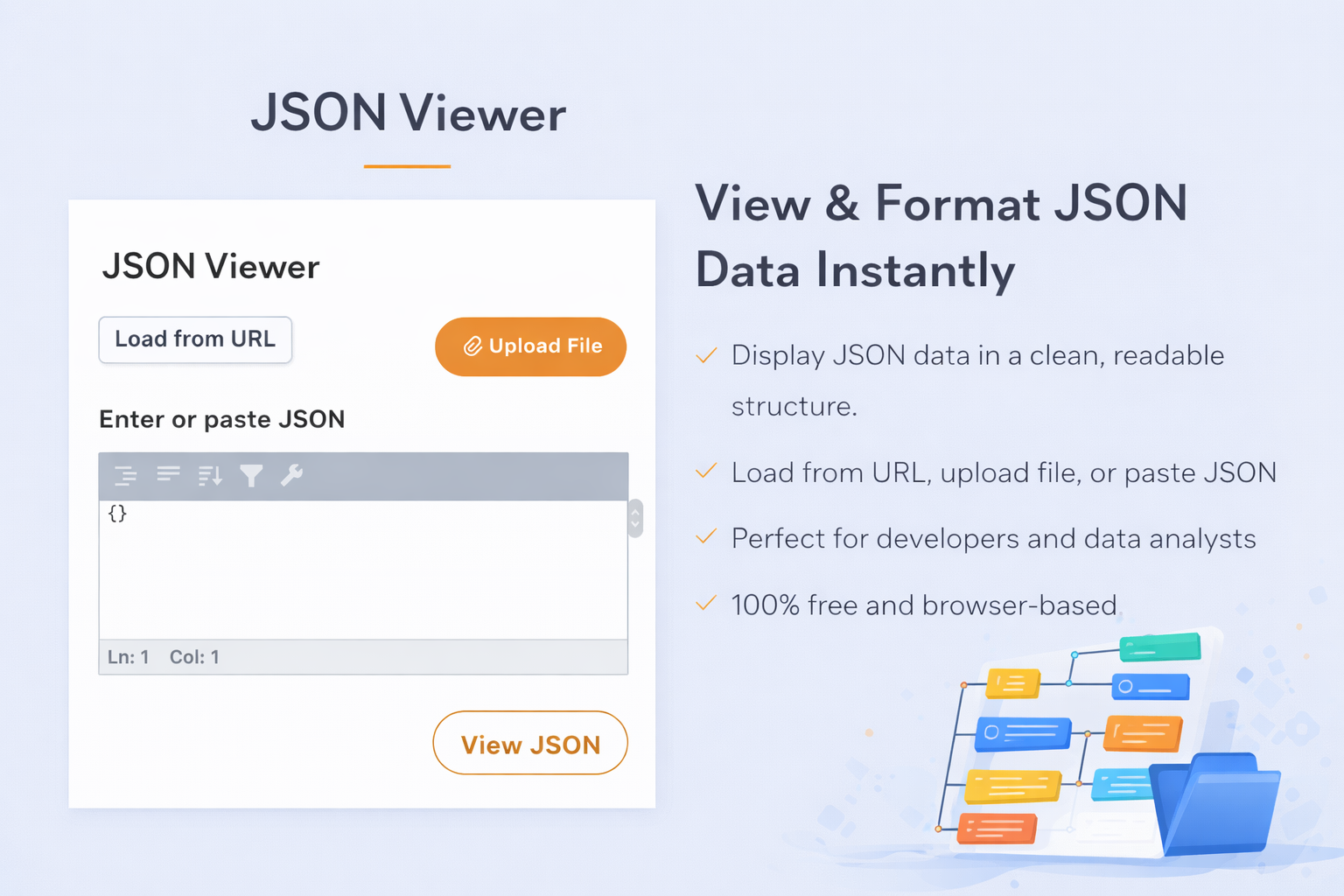 JSON Viewer tool for developers to quickly read, format, and analyse JSON data without installing software.